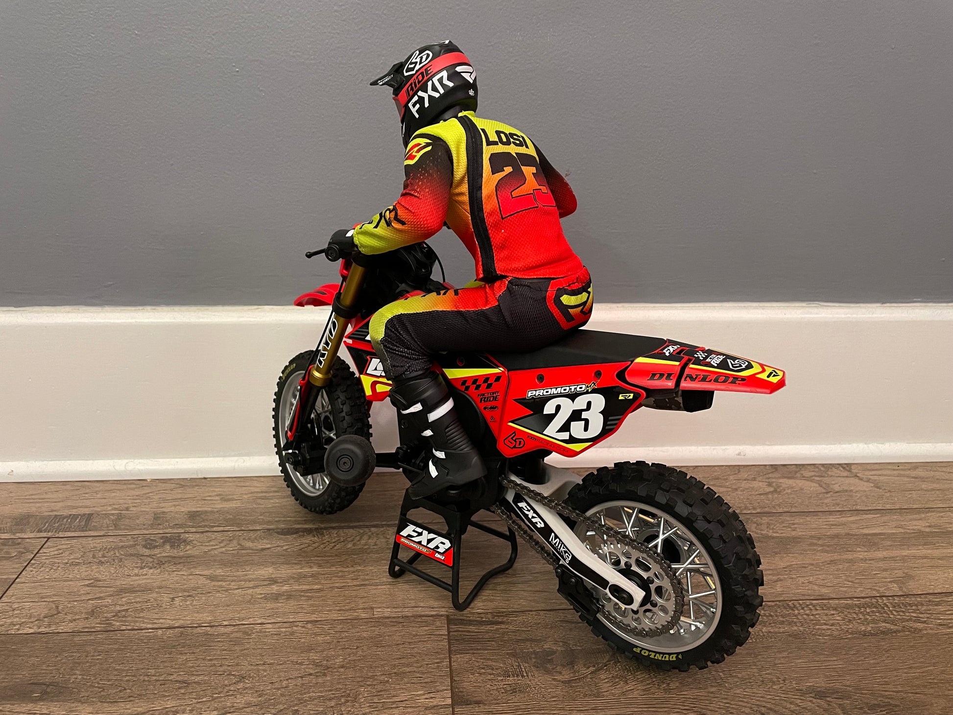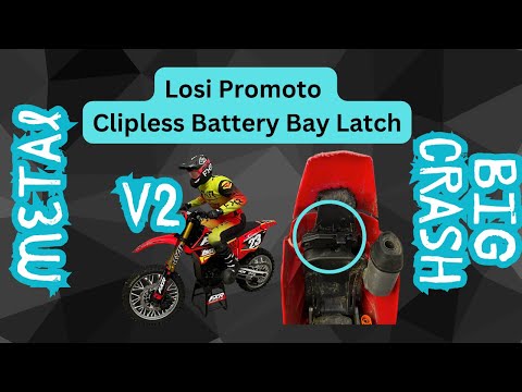 V2 Available NOW! Main Body is now Aluminum! You will break your bike before you break this latch. Do you want to never use body clips again? This clipless battery bay latch mount bolts directly onto your Losi Promoto with ZERO modification to the truck (100% reversible). It rotates and locks the battery bay to allow for a secure hold without using the body clip. When you're ready to lock it simply push the battery bay up (hold the rear and lift upwards) and then rotate the piece back to its locked position. To unlock, simply press the rear center of the battery bay upwards to relieve the pressure locking it shut and then rotate the piece to unlock it! The outer body is 3D printed aluminum (good luck trying to break this) with the center piece resin printed in Formlabs Tough 2000 so it is closer in comparison to ABS than your typical 3D printed plastic. Be sure to watch the installation video below for tips on how to use the lock. Please note these parts are spray painted flat black, but you can paint over top of this with whatever color you like. This part is able to installed on anything from scale driving to full on bashing. This part will have longer lead times so will go out of stock from time to time.