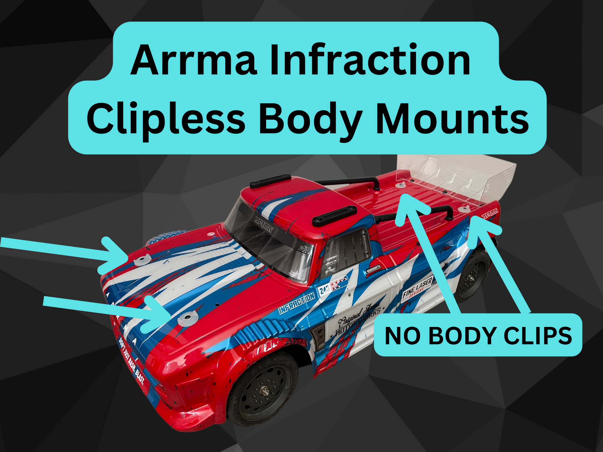 Clipless Body Mounts for Arrma Infraction (3S/6S)