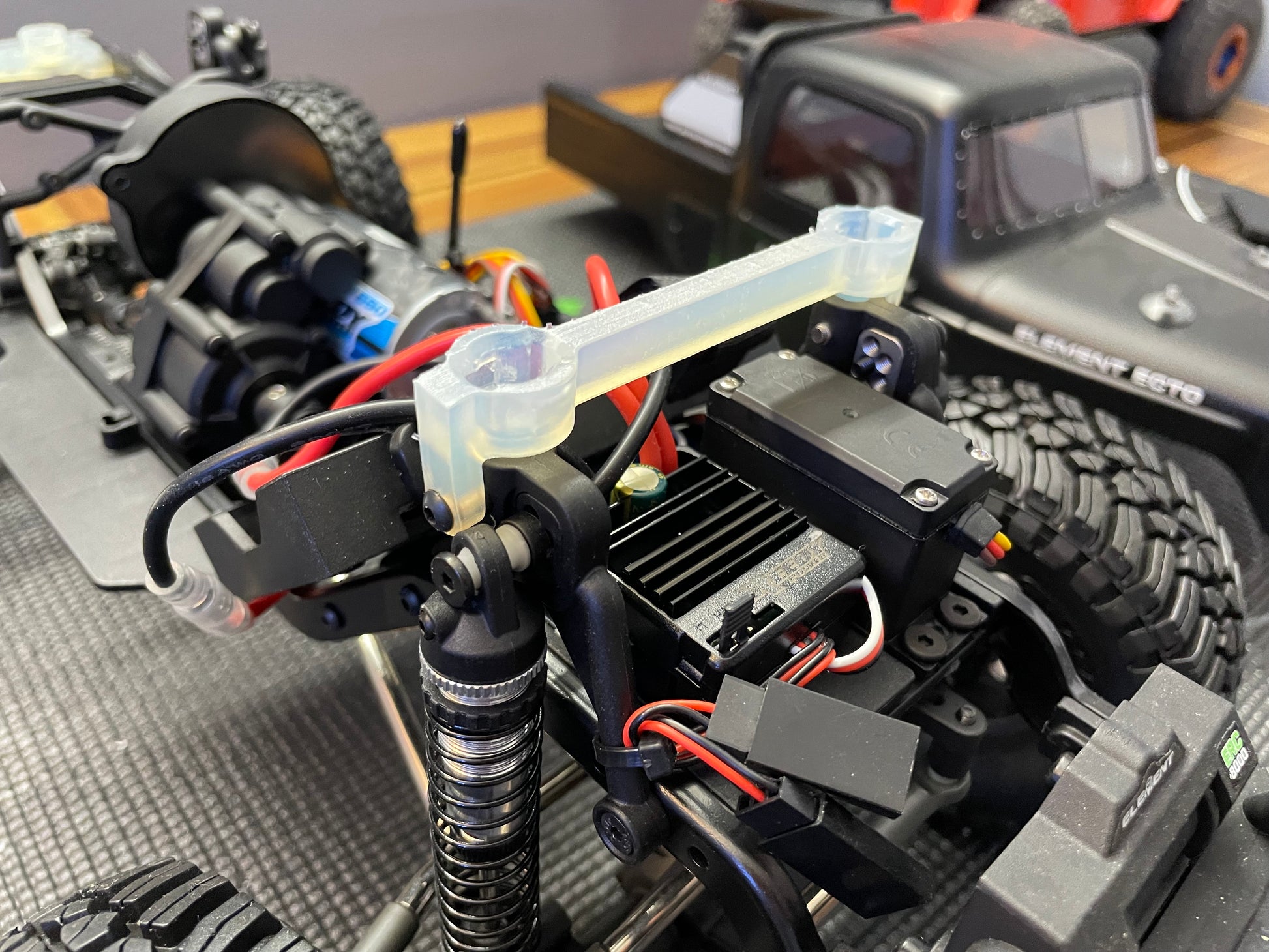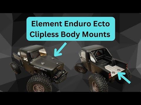 V2! More durable than ever before (updates made to the front)! Do you want to never use body clips again? This clipless body mount bolts directly onto your Element Enduro Ecto (OR Zuul) RC with ZERO modification to the truck (100% reversible). It locks into the lower portion included and allows for a secure hold on the body without using body clips. Simply twist the lock (counter-clockwise) and the body releases allowing you to open it up. When it is time to put the body on, just push down and turn the lock 90 degrees clockwise to lock it in place. When running trails or crawling rocks the latch stays secure and holds the body in place. This part is resin printed in Formlabs Tough 2000 and Formlabs Durable so these parts are meant to last.