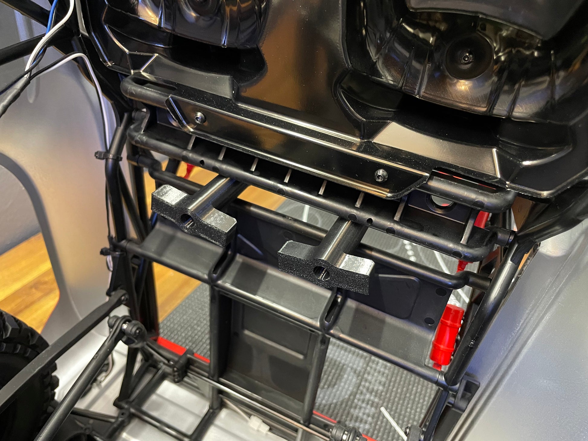 Introducing a quick and easy clipless body mounting solution for your FMS Bronco! Includes a full set front and rear. Simply twist the rear knobs 90 degrees to lock or unlock and easily slide the front unlocked or locked! Extremely simple to install and extremely durable due to being printed in Formlabs Tough 2000 resin and PETG for some parts. Make your FMS Bronco completely Clipless as it should have been from the factory! Improve the aesthetics and easy of use with this solution. Whenever you need to access the underside you can do so in seconds without any pain! No permanent modifications required! This install is 100% reversible or transferrable if you get a new body or truck! These parts are designed to last an extremely long time and as always just reach out if you have any questions or needs!