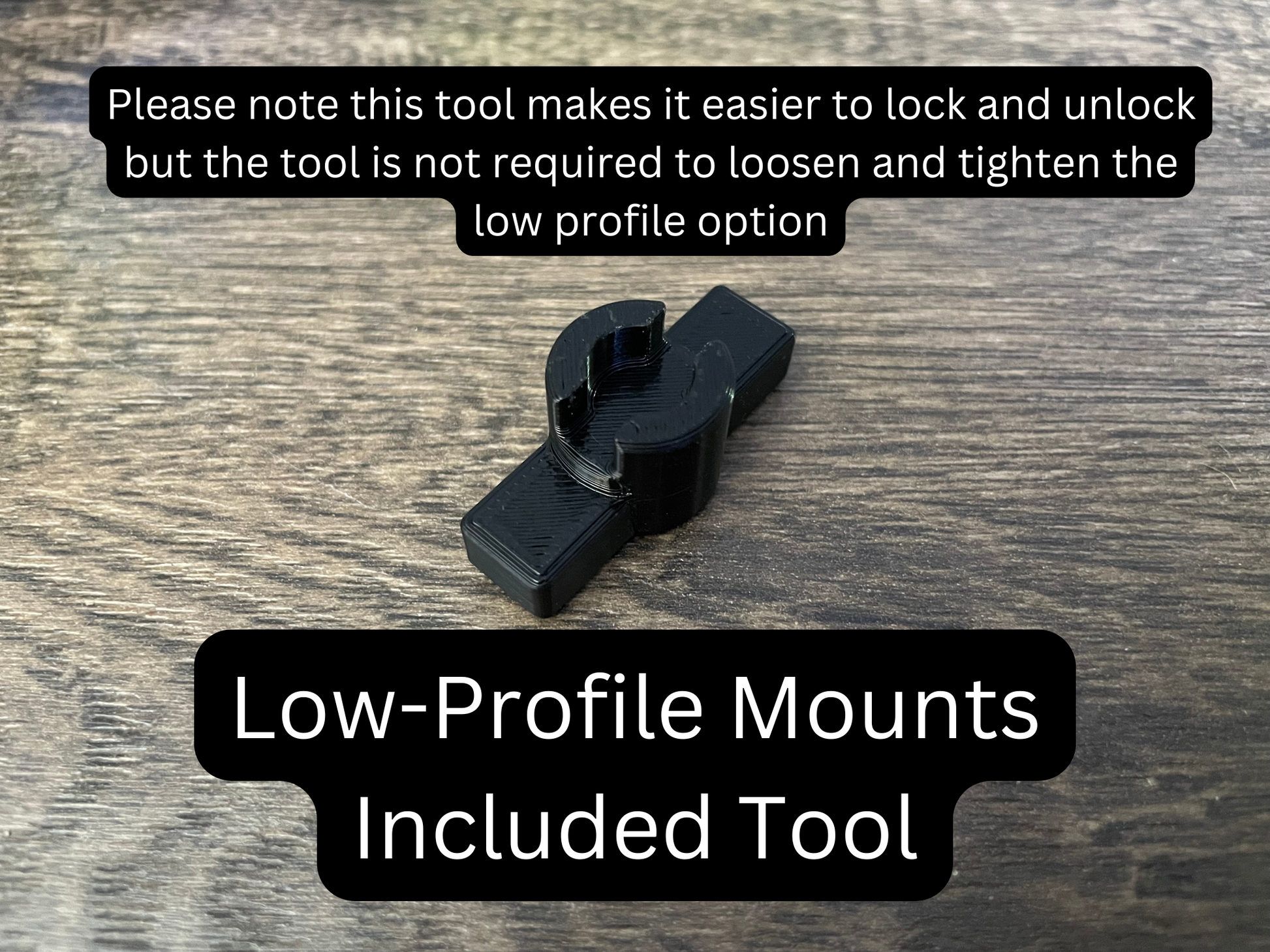 The standard mounts are easier to use for improved ergonomics, while the low-profile mounts are designed to be as slick as possible while still able to be used by hand. However, this can be difficult so a small tool is provided to assist if desired. I also recommend using a small piece of clear tape underneath the mounts on the body (topside) if you are concerned about rubbing against the decals.