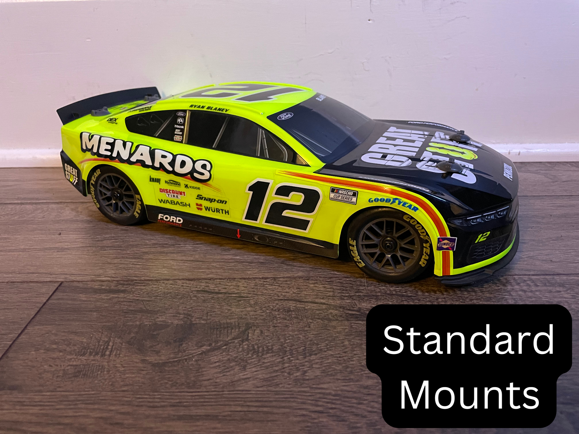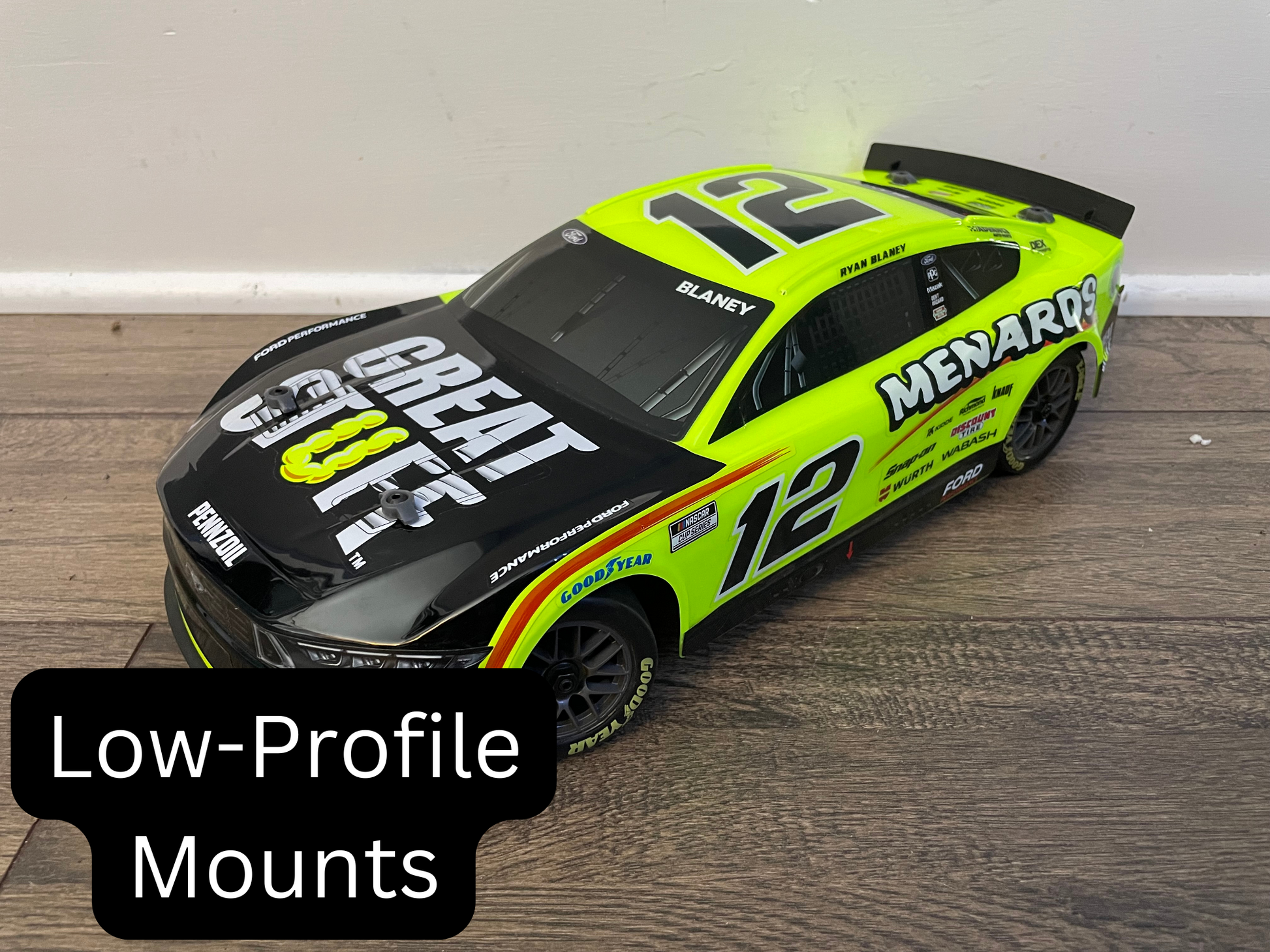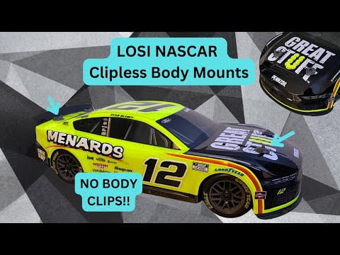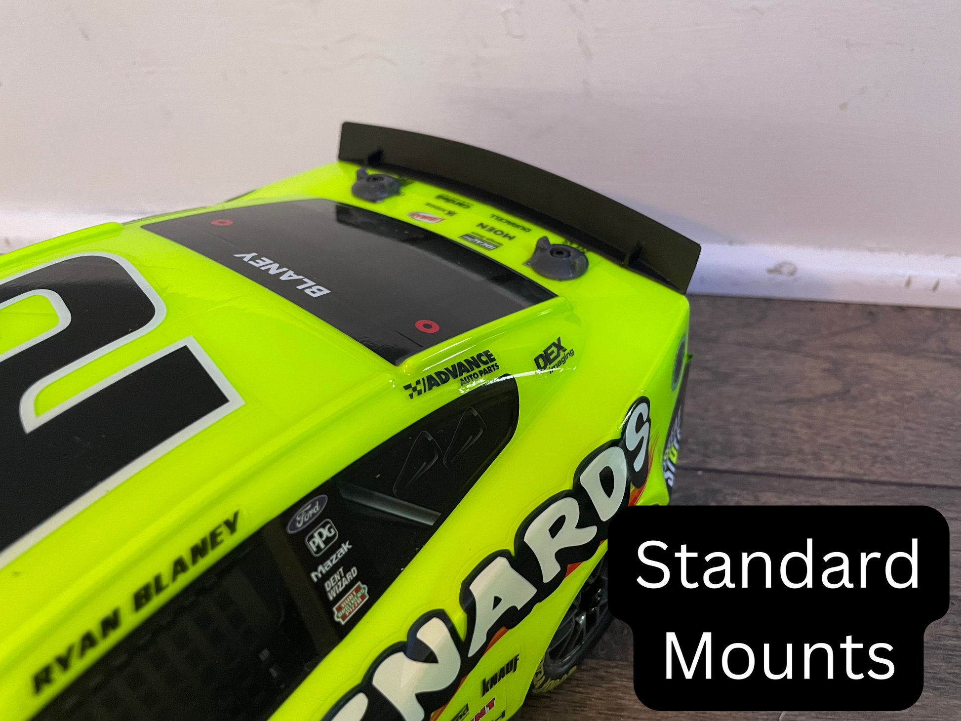 *New Options (Standard or Low-Profile Mounts) - Please see the photos to see the differences between the two options. Introducing a quick and easy clipless body mounting solution for your LOSI NASCAR! Simply twist the top knob 90 degrees counter-clockwise to unlock or 90 degrees clockwise to lock! Extremely simple to install and extremely durable due to being printed in Formlabs Durable resin and Formlabs Tough 2000 resin. This solution means you'll never lose a body clip ever again since these parts are always bolted to the car. Never forget to bring them with you and whenever you need to access the underside you can do so in seconds without any pain! These parts are designed to last an extremely long time and as always just reach out if you have any questions or needs!