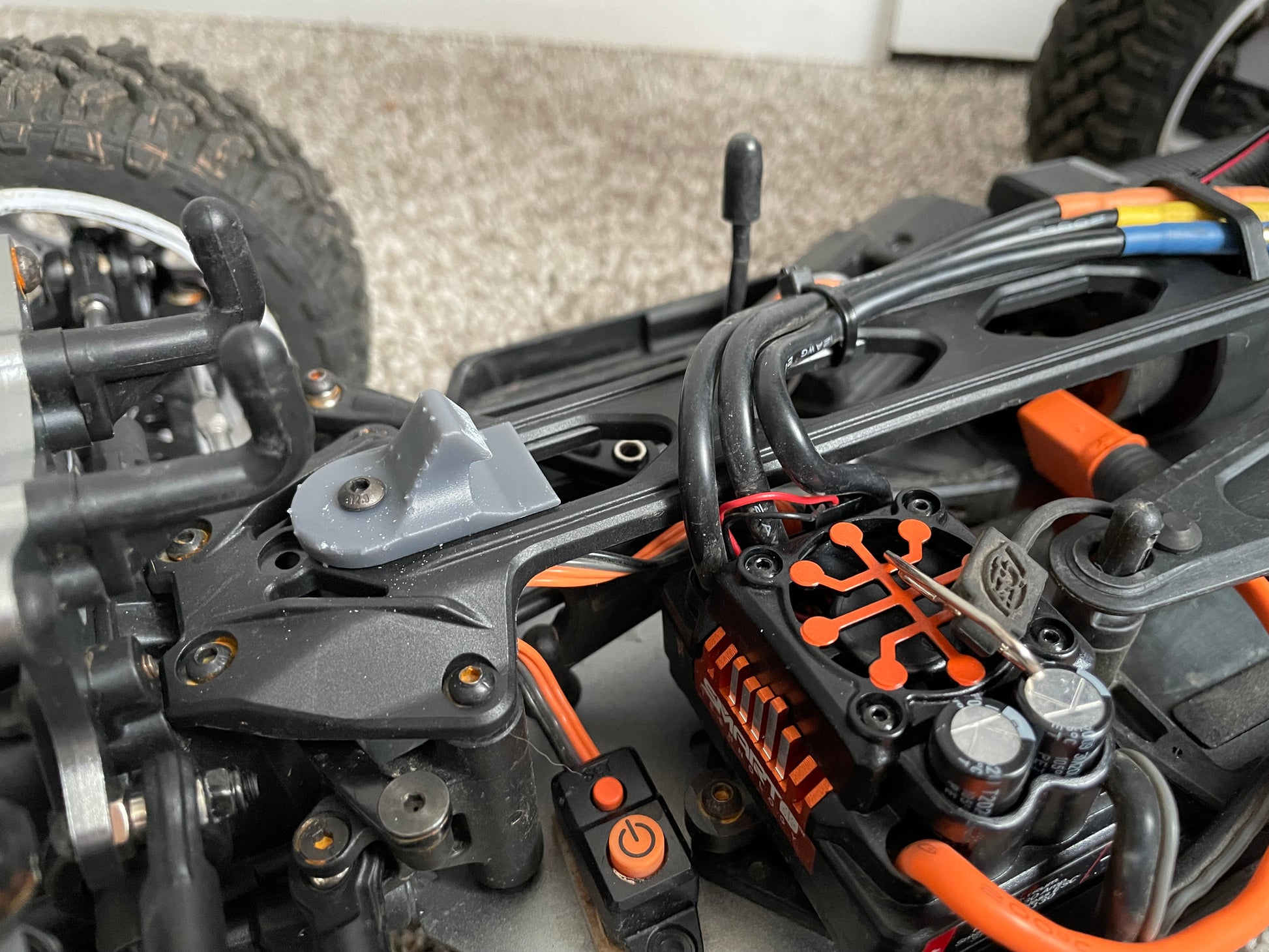 Are you tired of installing those body clips on your Losi DB Pro? Want the front end to look super clean? Well throw those body clips in the bin and switch to this clipless hood latch! Never worry about body clips again with this unique latching design. This hood latch keeps your body secure, but allows easy access when needed. Designed to handle a reasonable amount of abuse this latch is made to last. This latch brings a huge quality of life improvement! I performed FEA (simulation) on this design so I expect it to last a very long time barring any abuse. This part is resin printed in Formlabs Tough 2000 so it is closer in comparison to ABS than your typical 3D printed plastic. See photos for how it clips on the underside if you have any aftermarket modifications that may affect fitment.