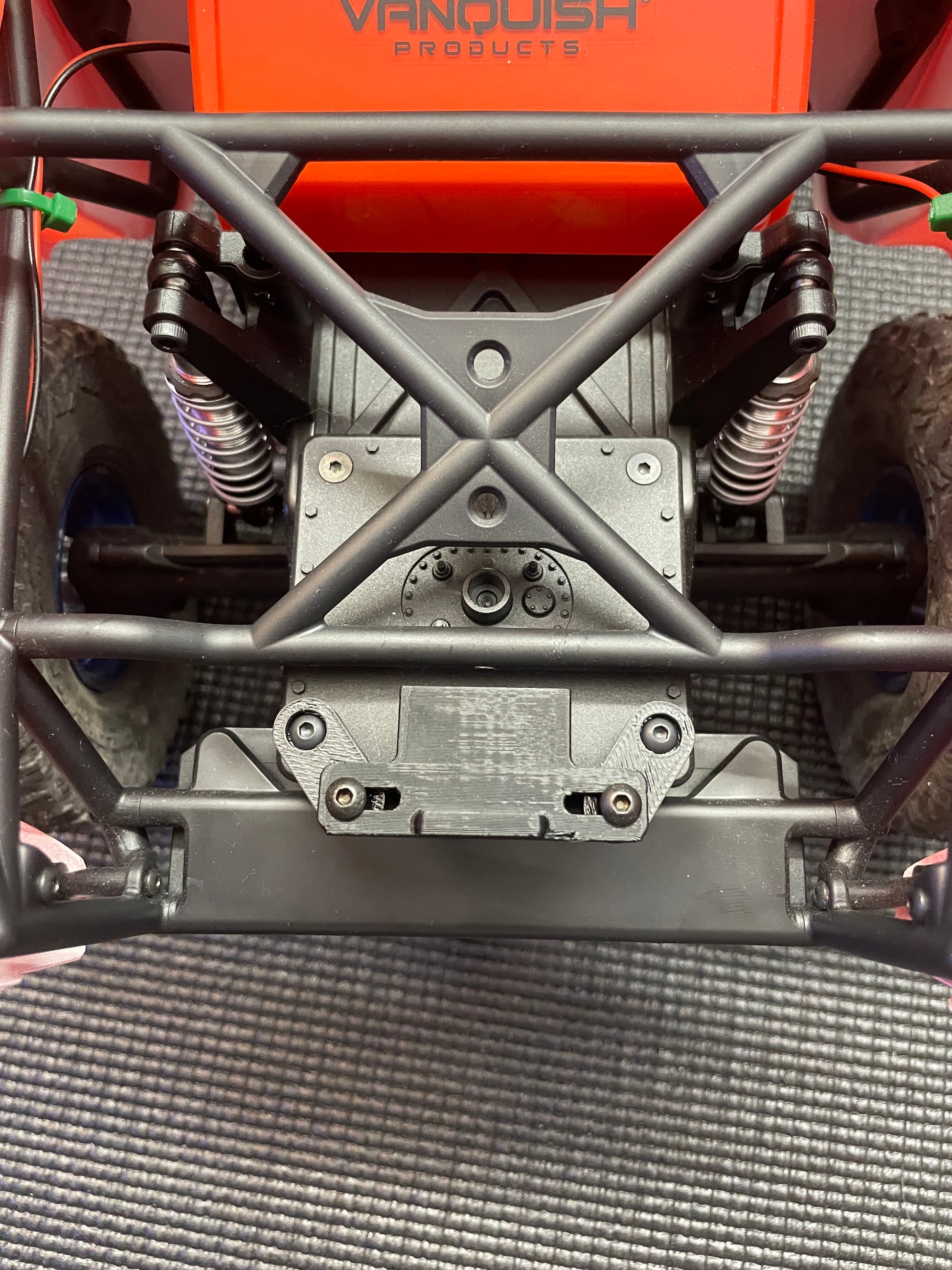 V2 NOW OUT! Do you want to never use body clips again? This clipless body latch bolts directly onto your Vanquish VS4-10 Phoenix/Fordyce with ZERO permanent modification to the truck (100% reversible). It slide forward and locks on the rear cage structure for a secure hold on the body without using body clips. Simply press towards the front of the truck to lock and pull towards the rear of the body tp release allowing you to open it up. When running trails or crawling rocks the latch stays secure and holds the body in place. Please note if you are running a spare tire in the back cage you may have to raise the height of the spare for this system to work.
